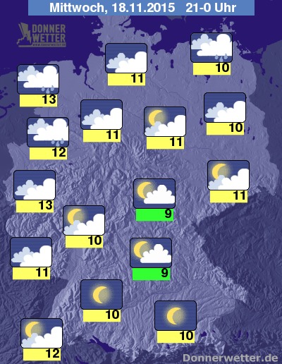 Heute Abend zieht im Nordwesten und im weiteren Verlauf auch im Norden neuer, oft kräftiger Regen auf, dabei sind auch kurze Gewitter möglich. Im Süden zeigt sich der Himmel zum Großteil locker bewölkt oder auch sternenklar, dazu bleibt es trocken. Im übrigen Bundesgebiet herrscht dagegen ein Wechsel aus Auflockerungen und teils dichter Bewölkung, auch hier bleibt es weitgehend trocken. Die Abendtemperatur liegt bei 13 Grad entlang der Ems und 9 Grad im Vogtland. Im Norden und Westen weht ein zunehemend stürmischer Wind, dabei sind auch im Flachland Sturmböen möglich.