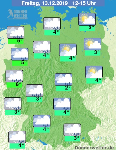 Im übrigen Land beherrschen kompakte, graue Schichtwolken für Vorherrschaft beim Wetter. Häufig kommt es dabei zu Niederschlägen, welche zum Teil bis in tiefere Lagen mit Schnee vermischt sein kann. Im Bergland schneit es zunächst ziemlich kräftig und es kann glatt werden.
