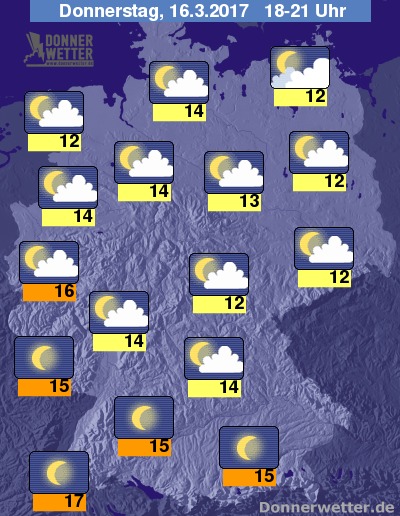 Im weiteren Verlauf des Nachmittages steigen die Temperaturen dann sogar noch. Dabei ist es nicht ausgeschlossen, dass in einigen Regionen entlang des Rheins auch die 20 Grad Marke fällt. Etwas kühler bleibt es hingegen im Norden und Osten. Im Süden zeigt sich am Abend zudem kaum noch eine Wolke am Himmel.