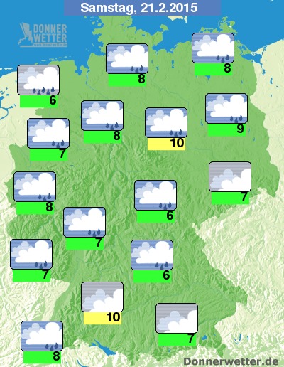So zieht am Samstag voraussichtlich ein atlantischer Tiefausläufer mit zum Teil kräftigem Regen über Deutschland hinweg. Mit Temperaturen von 6 bis 10 Grad bleibt es dabei zumindest recht mild.