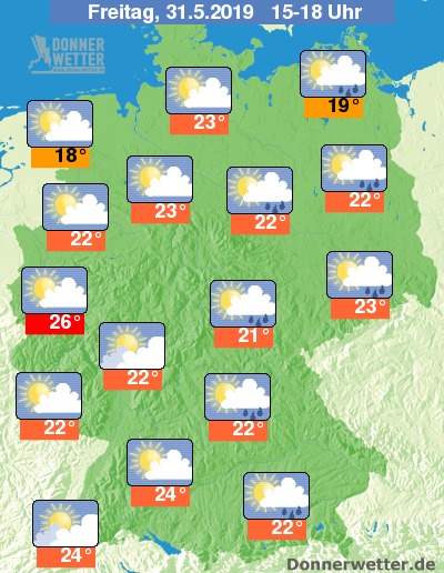 Die Temperaturen steigen im Laufe des Nachmittags allgemein noch etwas an und erreichen in den Ballungsgebieten des Westens bereits schon frühsommerliche 26 Grad.