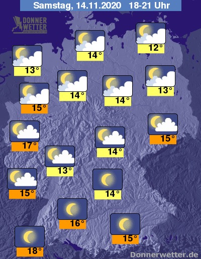 In der Nacht zum Sonntag bleibt es im Süden weitgehend sternenklar. Im Norden und Westen werden die Wolken hingegen immer dichter und im Nordseeumfeld ist auch etwas Regen möglich, sonst bleibt es trocken. Die Temperatur sinkt auf 12 Grad an der Ems und bis 4 Grad in Mittelfranken.