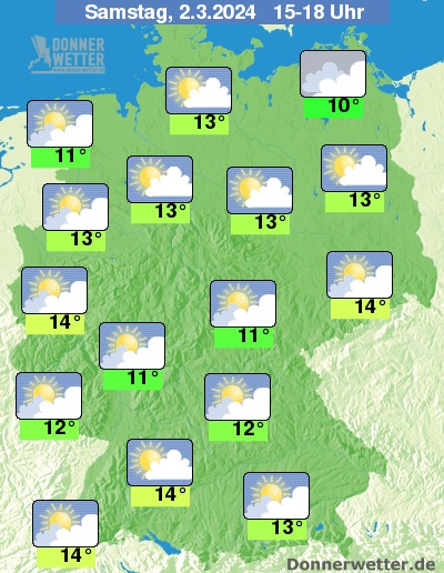 Die Temperaturen erreichen am Nachmittag Höchstwerte um 10 Grad an der Ostseeküste und 14 Grad am Oberrhein.