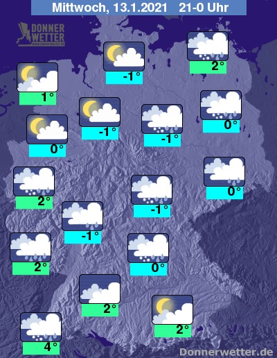 Die Temperaturen liegen zunächst zwischen 0 und 5 Grad und gehen bis Mitternacht regional in den leichten Frostbereich zurück.