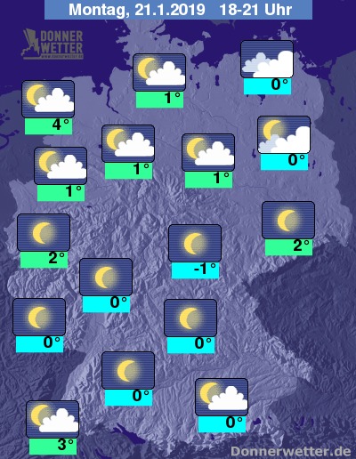 In der Nacht muss mit keinen Niederschlägen gerechnet werden, doch die Bewölkung nimmt teils zu. Die Temperaturen sinken auf kalte -6 Grad C in Thüringen und -2 Grad in der Eifel.
