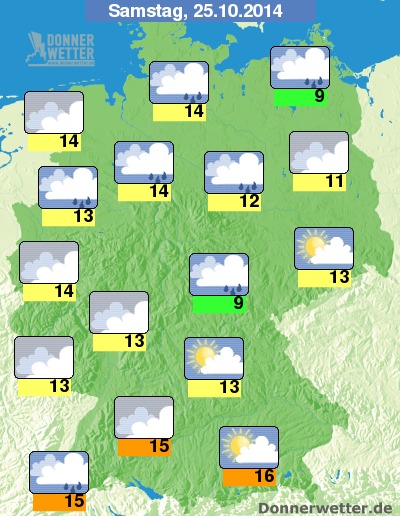 Heute wird es insgesamt ein unbeständiger Herbsttag, es ziehen immer wieder dichte Wolken mit gelegentlichem Regen durch, dabei sind aber auch Auflockerungen möglich. Freundlicher und weitgehend trocken ist es zunächst noch im Osten und Süden des Landes, aber auch hier kann es am Nachmittag gebietsweise regnen. Die Temperatur steigt auf 9 Grad am Stettiner Haff und bis 16 Grad in München.