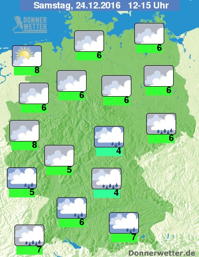 Heute Abend ist es über der breiten Landesmitte oft aufgelockert bewölkt und mehrheitlich trocken. Nördlich und südlich des breiten Streifens bleibt es hingegen bei der dichten Bewölkung und zeitweiligem Regen. Die Temperatur liegt zwischen 4 und 8 Grad. An Nord- und Ostsee weht ein teils stürmischer Wind.