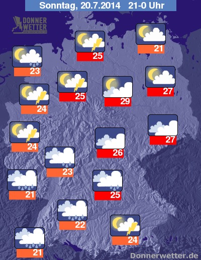 In der kommenden Nacht ziehen vielfach dichte Wolken übers Land, nur hier und da kann es zeitweise etwas auflockern. Vielerorts bilden sich teils gewittrige Regengüsse, im Osten und Nordosten des Landes bleibt es dagegen überwiegend trocken. Die Temperatur sinkt auf 20 Grad in Chemnitz und etwas kühlere 16 Grad an der Ostsee.