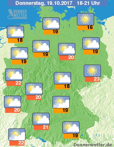 Bis zum Abend klart es dann tendenziell sogar noch weiter auf und auch im Südwesten kommt vermehrt die Sonne zum Vorschein. Die Temperaturen erreichen am späten Nachmittag dann noch einmal rund 16 Grad auf Rügen und beinahe sommerliche 23 Grad am Rhein und in Sachsen.