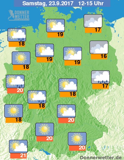 Heute Nachmittag halten sich von Sachsen, über Brandenburg bis zur Ostsee meist dichte Wolken aus denen auch gebietsweise Regen fällt. Im übrigen Bundesgebiet ist es überwiegend heiter und oft auch sonnig. Nur hier und da können dichtere Wolken auch einzelne Schauer bringen, sonst bleibt es trocken. Die Temperatur liegt bei 17 bis 21 Grad.