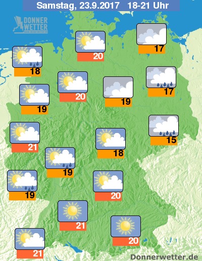 Heute Abend bleibt es von der Ostsee bis nach Sachsen weitgehend bedeckt und es fällt zeitweise Regen. Vereinzelte Schauer sind entlang von Rhein und Ems möglich, sonst ist es aber überwiegend heiter, vor allem im Süden auch sonnig und dazu trocken. Die Temperatur liegt anfangs noch bei Werten zwischen 15 und 21 Grad.