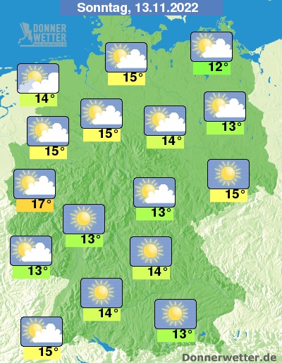 Am Sonntag zeigt sich das Wetter über der Südwesthälfte des Lands nach örtlicher Nebelauflösung verbreitet sonnig. Weiter nach Nordosten hin bleibt es vielerorts auch trüb, teils lockert die Bewölkung aber auch auf, dabei bleibt es trocken. Die Temperatur steigt auf 12 Grad an der Müritz und bis 17 Grad im Rheinland.