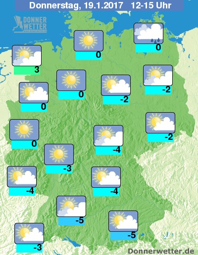 Fast 10 Grad liegen heute zwischen den Tageshöchsttemperaturen im Norden und Süden. Während das Thermometer an der Nordsee bis auf 3 Grad klettert, verharrt es im Süden bei frostigen -5 Grad. Dazu gibt es vor allem in der Westhälfte des Landes viele Stunden strahlenden Sonnenscheins und auch in den restlichen Landesteilen zeigt sich gelegentlich die Sonne. Nass wird es ausschließlich in Ostseenähe.