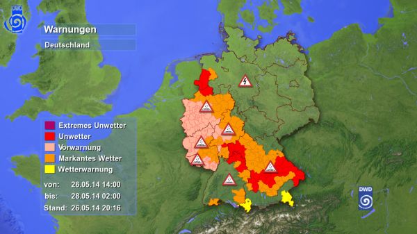 Quer durch Deutschland zieht sich ein Starkregenband vom westlichen Niedersachsen bis nach Bayern. Lokal ist mit Starkregen, auch am Dienstag und am Mittwoch zu rechnen.