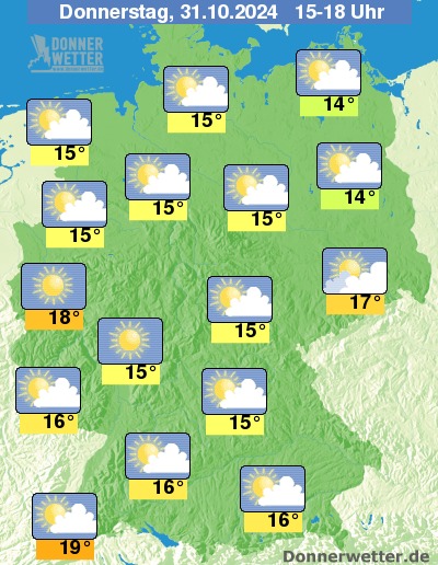 Am Donnerstagnachmittag bleibt der Himmel über dem Norden weitgehend stark bewölkt. In den übrigen Landesteilen sind in den kommenden Stunden längere Auflockerungen möglich, vor allem im Süden und an den Osthängen der Mittelgebirge. Im Norden kann selten etwas Sprühregen fallen, sonst bleibt es niederschlagsfrei.