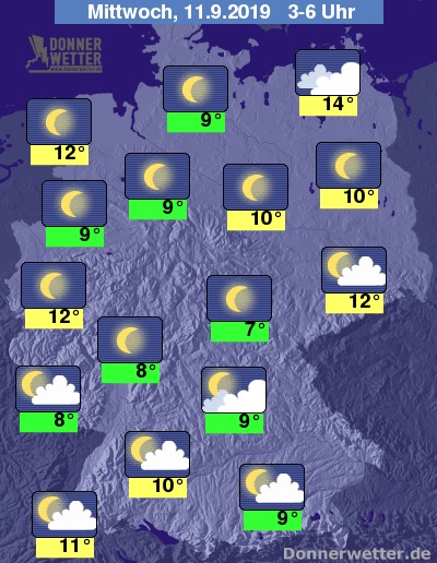 Während der zweiten Nachthälfte wird es häufig sternenklar oder nur leicht bewölkt. Lediglich im Ostseeumfeld bleibt die Wolkendecke noch dichter, Regen fällt aber voraussichtlich nicht mehr.