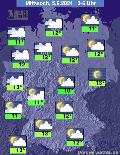 Die Temperaturen gehen in den Frühstunden zurück auf Werte um 13 bis 11 Grad.