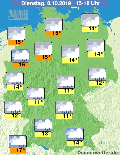 Bis zum Abend trocknet die Luft im Norden ab, die Wolkendecke bleibt aber meistens dicht. Auch im Alpenvorland sollte es zunächst noch meistens niederschlagsfrei bleiben. Dazwischen fällt weiterhin zeitweise Regen- und Sprühregen.