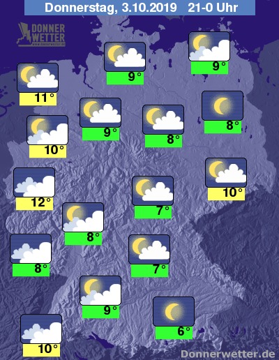 In den Frühstunden kühlt die Luft auf 3 bis 9 Grad ab, stellenweise muss mit leichtem Bodenfrost gerechnet werden. Direkt an der Nordsee, sowie auf den Inseln weilen die Temperaturen meist im zweistelligen Bereich.