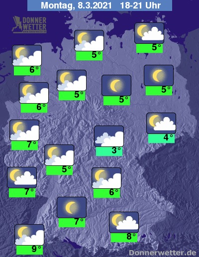 Temperaturen am Abend zunächst noch um 3 bis 9 Grad.
