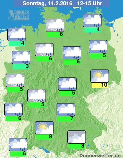 Die Temperaturen steigen auf Werte um 3 Grad C im Münsterland und 10 Grad C in Dresden.