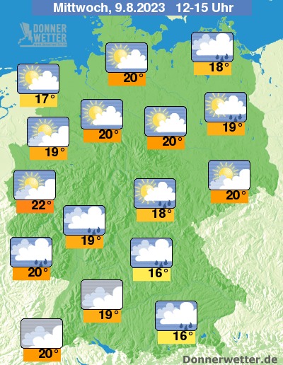 Heute Nachmittag ziehen über den Nordosten und Süden der Republik häufig kompakte Wolken hinweg, dabei sind hier gebietsweise Schauer möglich. Im übrigen Land ist es teils heiter, teils auch stärker bewölkt, aber weitgehend trocken. Die Temperatur liegt bei 16 Grad in Mittelfranken und 22 Grad im Rheinland.
