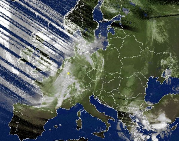 Ein kräftiges Tief über der Nordsee sorgt mit seinen Ausläufern in weiten Teilen von West-, Nord- und auch über Mitteleuropa für sehr unbeständiges und mit zahlreichen Schauern durchsetztes Wetter. Auf dem Satellitenfoto von heute Morgen sind besonders über dem Osten Frankreichs und in den westlichsten Landesteilen von Deutschland sehr kompakte Wolken zu erkennen, die hier oft langanhaltenden und teils auch ergiebigen Regen brachten.