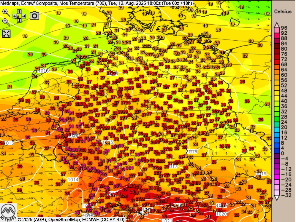 Verbreitet Temperaturen um 30 Grad am Nachmittag.