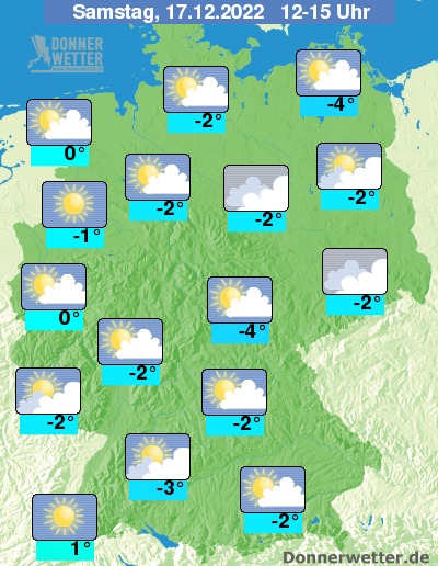 Heute Nachmittag halten sich im Osten gebietsweise dichte Wolken, zum überwiegend größten Teil ist es aber heiter bis sonnig. Es bleibt landesweit trocken bei -4 Grad im Grabfeld und 1 Grad im Breisgau.