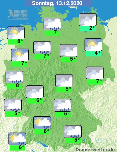 Höchsttemperaturen zwischen 2 Grad an der Odermündung und 7 Grad in der Kölner Bucht.