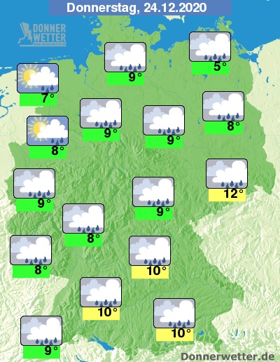 Zunächst noch verbreitet Regen, im Tagesverlauf allmählich seltener werdend und stellenweise Wolkenlücken. Im Bergland mischen sich Flocken unter die Tropfen.