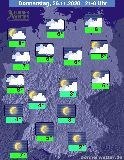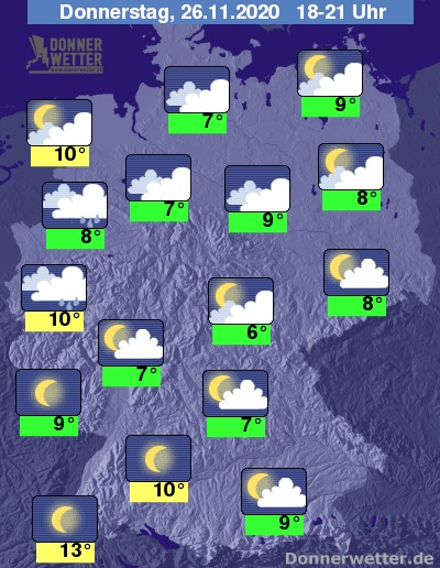 Vor Dämmerungsbeginn liegen die Temperaturen allgemein noch zwischen 5 und 13 Grad.