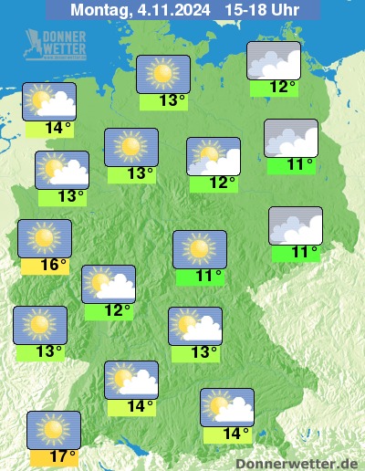 Am Montagnachmittag zeigt sich der Himmel über dem Norden und Osten stark oder hochnebelartig bewölkt und zeitweise fällt etwas Sprühregen. Sonst ist es nach Nebelauflösung verbreitet heiter oder sonnig und es bleibt trocken.