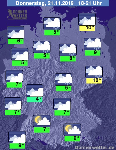 Vor Dämmerungsbeginn liegen die Temperaturen deutschlandweit zwischen 4 und 12 Grad. Am mildesten bleibt es dabei in Teilen Sachsens.