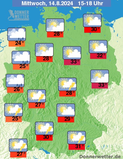 Hier stehen am Nachmittag und Abend Gewitter auf dem Programm.