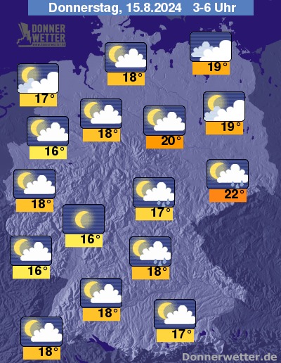 In der Nacht zum Donnerstag sind bei wechselnder Bewölkung im Norden und Süden zunächst weitere, teils gewittrige Schauer möglich, die im weiteren Verlauf nachlassen. Überwiegend trocken bleibt es in der Nacht bei größeren Auflockerungen in der Westhälfte.