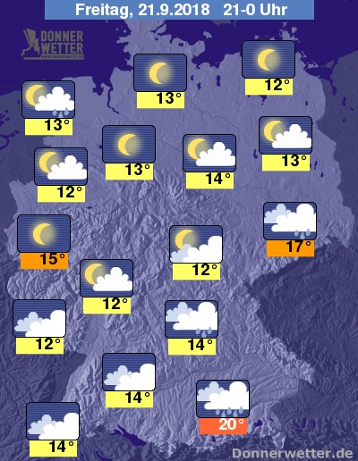 Während der ersten Nachhälfte wandern Regen und Schauer nach Polen und ins südöstliche Bayern ab. Dahinter klart es teilweise auf und die Temperaturen gehen deutlich nach unten. Im Nordseebereich kann es ebenfalls noch zu örtlichen Schauer kommen.