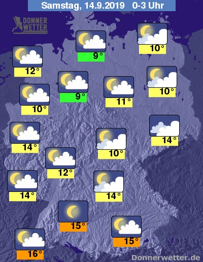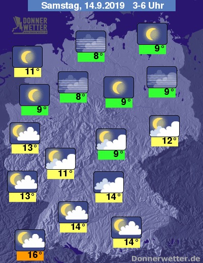 In der Nacht zeigt sich der Himmel über dem Süden des Landes überwiegend locker oder aufgelockert bewölkt. Im Norden dominieren zunächst auch noch lockere Wolken das Himmelsbild, in den Frühstunden klart es dann aber verbreitet auf. Vor allem entlang der Weser kann sich stellenweise Nebel bilden. Es bleibt trocken.