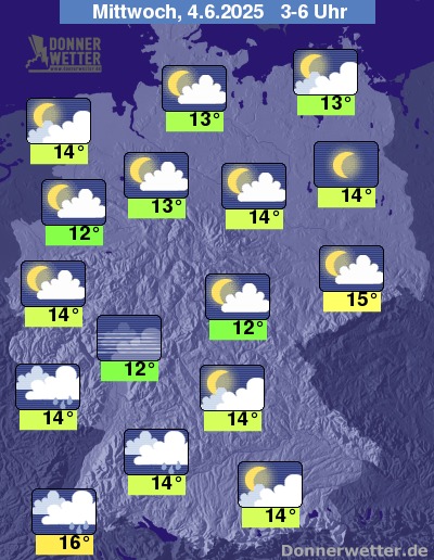 In der Nacht zum Mittwoch ziehen Schauer und Gewitter im Südosten Deutschland ab, im weiteren Verlauf zieht dann von Südwesten neuer, teils gewittriger Regen auf. In den übrigen Landesteilen ist es teils gering bewölkt, teils wolkig und es bleibt niederschlagsfrei.