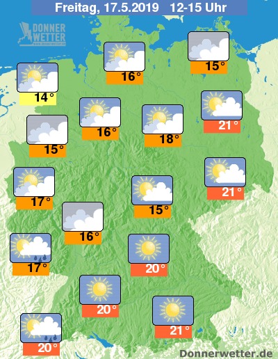 Die Temperaturen liegen im Nordwesten und in der Mitte meist zwischen 14 und 18 Grad, im Osten und Süden kann sich die Luft bereits schon auf Werte um 20 Grad oder leicht darüber erwärmen.