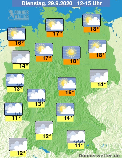 Am Nachmittag fällt im Süden und Westen aus dichten, grauen Schichtwolken gelegentlich Regen, auch in der Lausitz kann es stellenweise mal etwas tröpfeln. In den anderen Gebieten gibt es oft eine freundliche Mischung aus Sonne und Wolken. In Teilen von Niedersachsen und Sachsen-Anhalt strahlt die Sonne auch für längere Zeit.