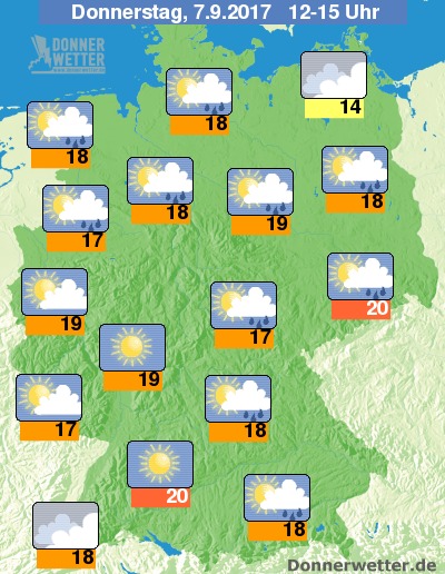 Im weiteren Nachmittagsverlauf werden Schauer im Land seltener, vereinzelte Tropfen fallen dann vor allem noch entlang der Oder sowie im äußersten Nordwesten. Der Himmel zeigt sich dabei meist stark oder aufgelockert bewölkt, zwischen Main und Donau domieren heitere Phasen.