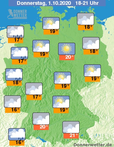 Am Abend fällt von der Kölner Bucht bis zur Nordsee leichter Regen, auch im Breisgau kann es mal tröpfeln. Sonst präsentiert sich der Himmel teils bewölkt, teils aufgeheitert. Vor allem über Sachsen-Anhalt kann den Sonnenuntergang nahezu ungestört von Wolken genießen.