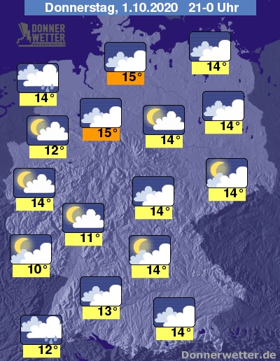 Bis Mitternacht tröpfelt es nur noch vereinzelt und die Wolkendecke reißt stellenweise auf. Regional leuchten Mond und Sterne für längere Zeit.