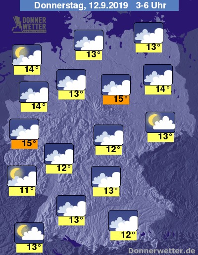 Bis zu den Frühstunden gehen die Temperaturen auf recht milde 10 bis 15 Grad zurück.