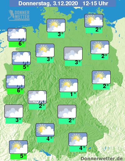 Am frühen Nachmittag fällt im Westen aus kompakteren Schichtwolken, Richtung Rhein-Main-Gebiet auch Schneeregen und in höheren Lagen der Westdeutschen Mittelgebirge Schnee oder Schneeregen mit Gefahr von Straßenglätte. In den anderen Landesteilen gibt es neben dichteren Wolken, regionalen Nebel- oder Hochnebelfeldern auch stellenweise Aufheiterungen.