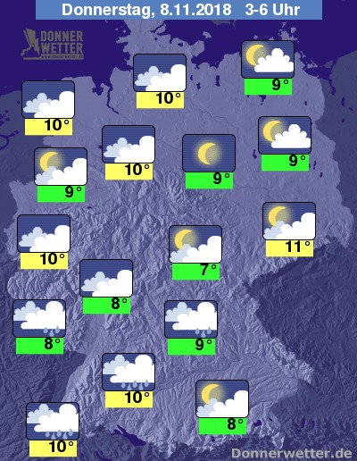 Bis Mitternacht breitet sich der Regen im Südwesten und Westen etwas aus und erreicht auch das Rhein-Main-Gebiet. Im übrigen Bereich zeigen sich teilweise die Sterne. Stellenweise können sich Nebelfelder bilden. Die Temperaturen gehen zurück.