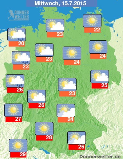 Heute ist es vielerorts heiter oder auch aufgelockert bewölkt und dazu trocken. Besonders im Südwesten und Nordosten der Republik ist es sogar verbreitet sonnig. Ab den Nachmittagsstunden können sich hingegen im Westen und Nordwesten bei teils dichten Quellwolken mögliche Schauer und auch Gewitter bilden. Die Temperatur steigt auf 20 Grad in Ostfriesland und bis 29 Grad am Bodensee.