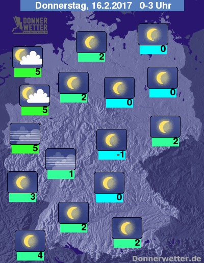 Im Thüringer Bergwald um minus 1 Grad C und im Ostfriesland um 5 Grad C.