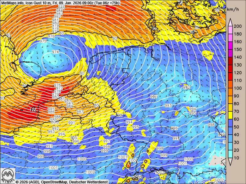 Am Freitag zieht ein kräftiges Sturmtief über Mitteleuropa hinweg. Über dem Ärmelkanal treten in der Folge Orkanböen auf, und auch in Deutschland sind weite Landesteile von einem Wintersturm betroffen: Vor allem im Norden und Westen muss mit schweren Sturmböen gerechnet werden. Begleitend setzt verbreitet Schneefall ein, der durch den starken Wind zu teils erheblichen Schneeverwehungen führen kann.